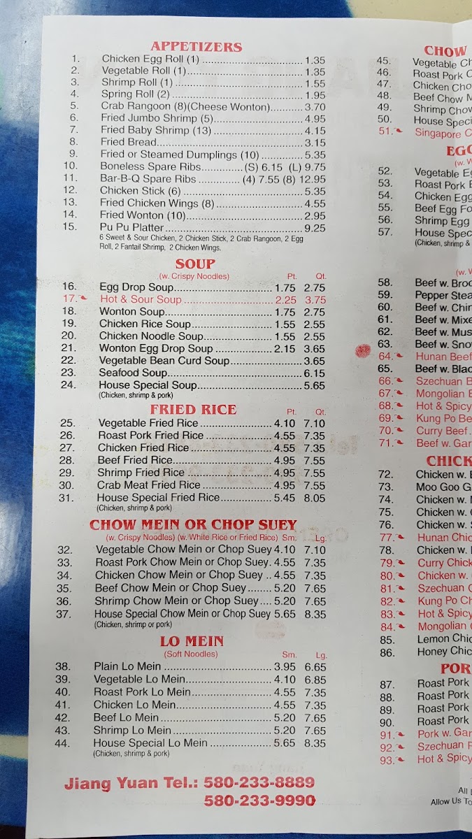 Jiang Yuan Menu